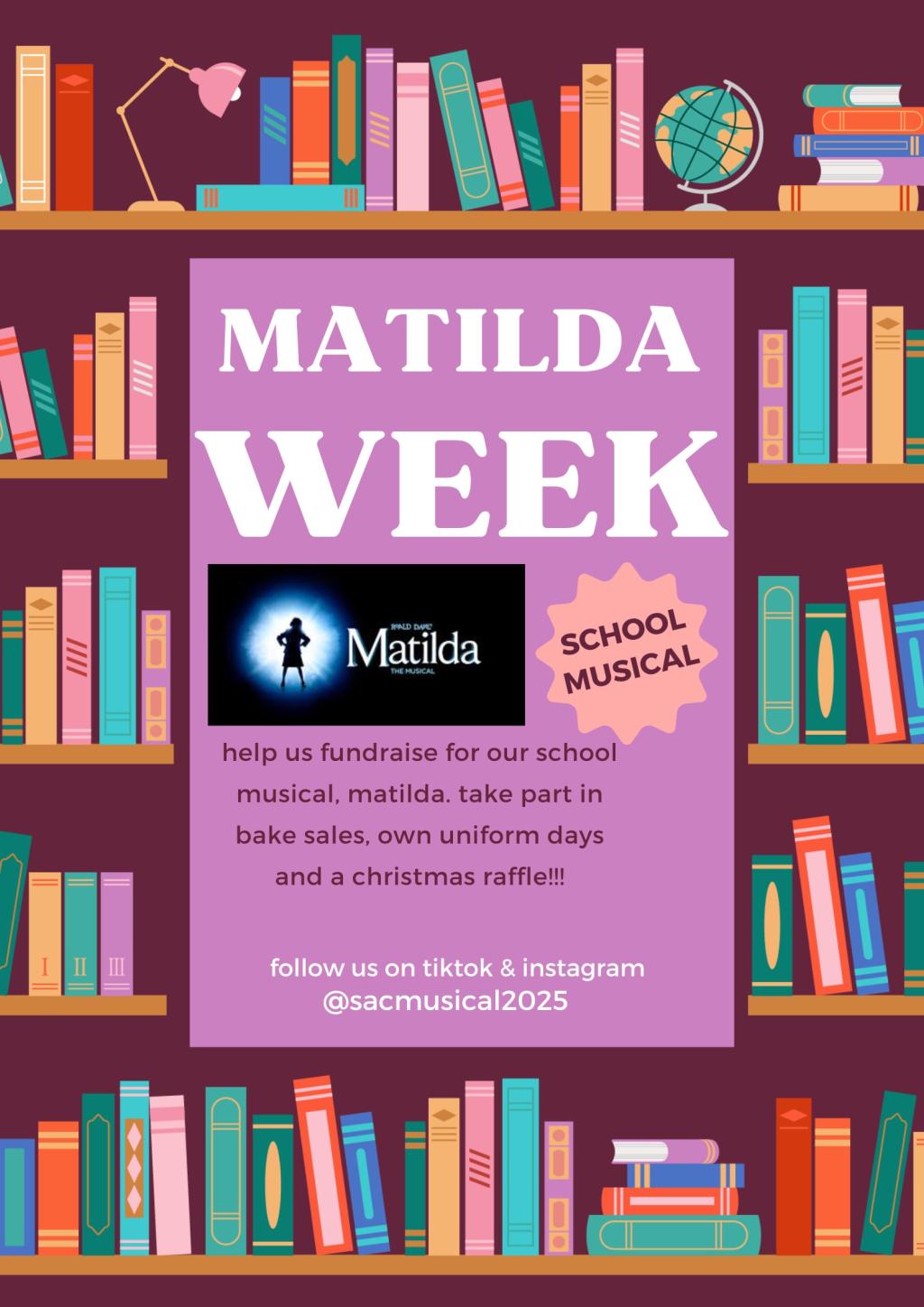 As part of our fundraising efforts in aid of the school Musical, Matilda, we will be holding a bake sale outside the canteen at 1:10pm tomorrow, Thursday. On Friday there is a non-uniform day. Donations of €3 can be made through the app or in person on the day. Thank you for support and generosity.