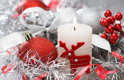 candle and christmas balls with shallow focus close up shoot