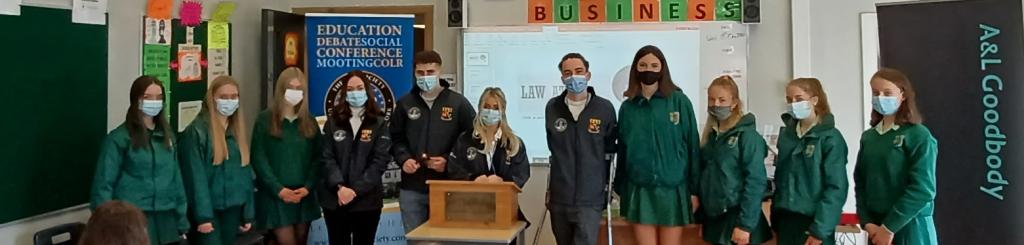 St Angela’s College TY Law class welcomed members of the prestigious UCC Law Society to their class last Wednesday morning. Society members gave our students an excellent overview on the routes to become a Solicitor or a Barrister listing some practical tips and advice on their potential future careers. Most beneficial was the challenge of organising and performing in a Moot Court through the superb guidance of the Moot Convenor. We hope to see UCC Law Society back with us again in the near future.
